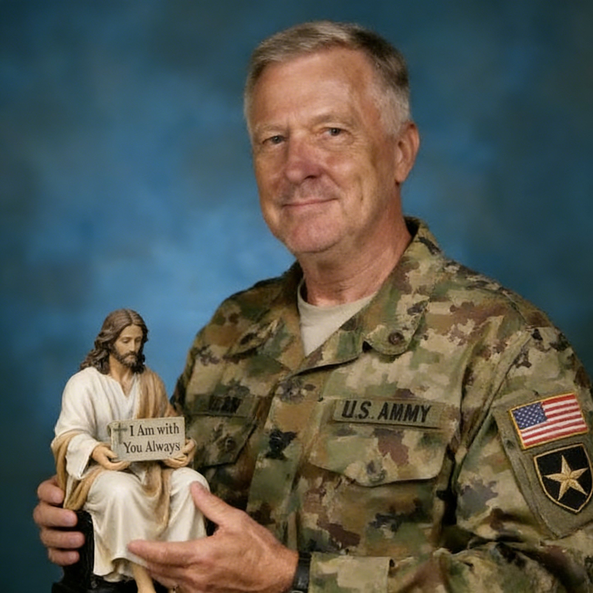Jesus Holds a tablet inscribed with "I Am with You Always" A powerful scripture to banish anxiety and bring courage to your day.