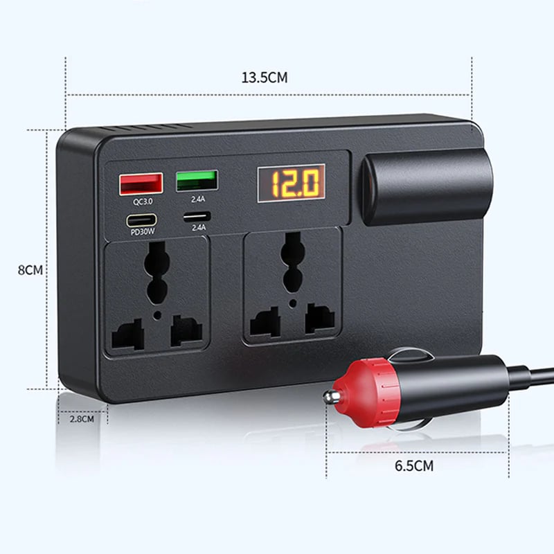 The clear digital screen shows the current voltage, allowing you to monitor your car's battery and the inverter's status at a glance. This gives you complete peace of mind on the go.